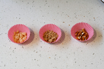 Put a layer of something crunchy into the bottom of each mini muffin liner.
